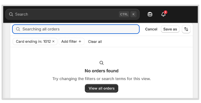 Shopify does not support a “failed transaction” status. Below is an example from Stripe.